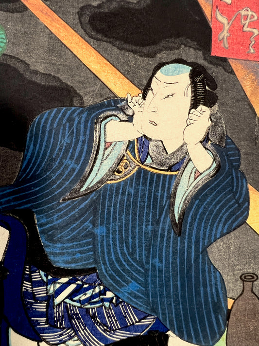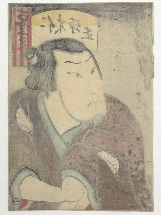 Estampe Japonaise de Kiyosada dit Masunobu Ittosai, Portrait d'acteur et flamme surnaturelle