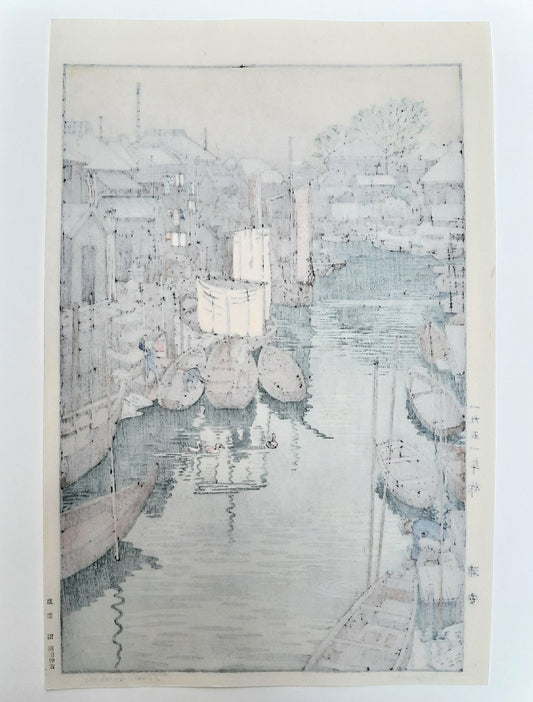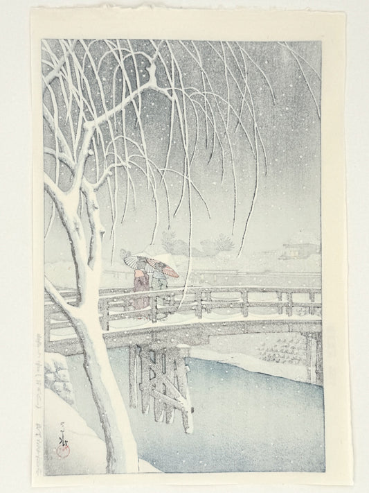 Estampe Japonaise de Hasui Kawase, Soir de Neige à Edogawa
