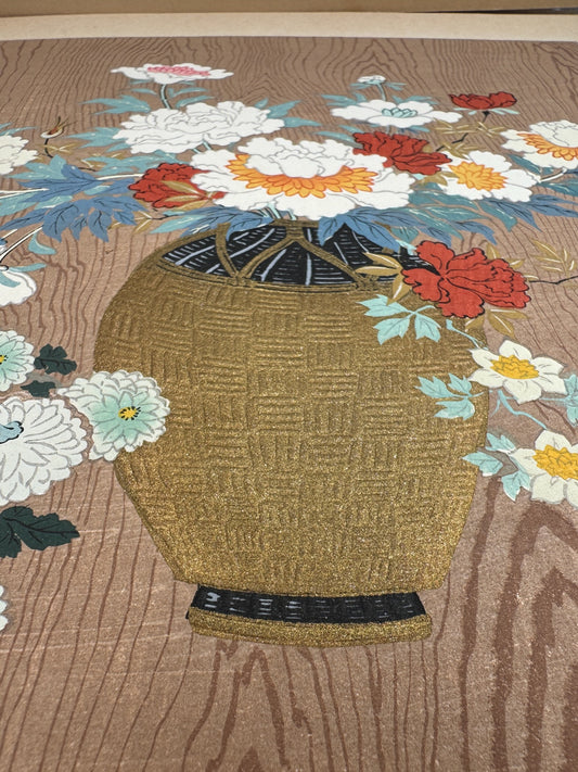 Estampe Japonaise Ecole Kano | Panier de Fleurs