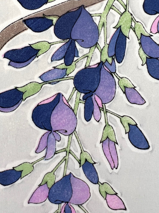 Estampe Japonaise de Kawarazaki Shodo, Glycine bleue