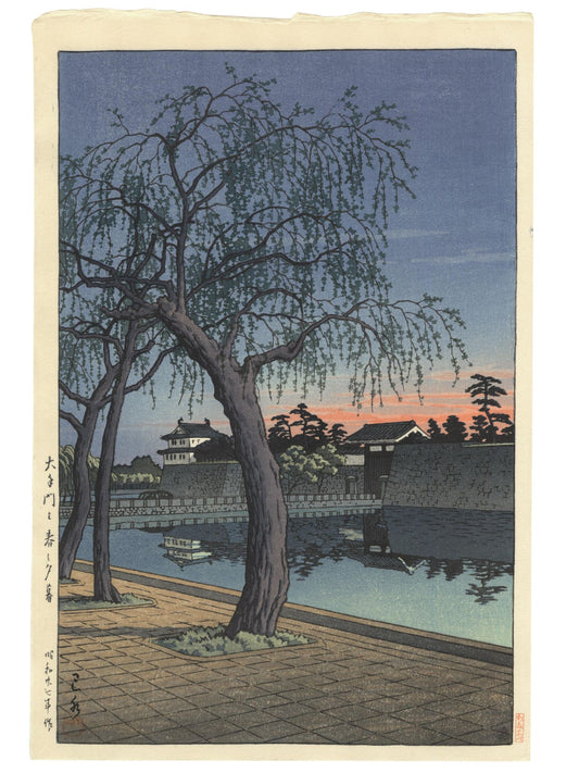 Estampe Japonaise de Hasui Kawase | Crépuscule de printemps sur le Palais Impérial de Tokyo