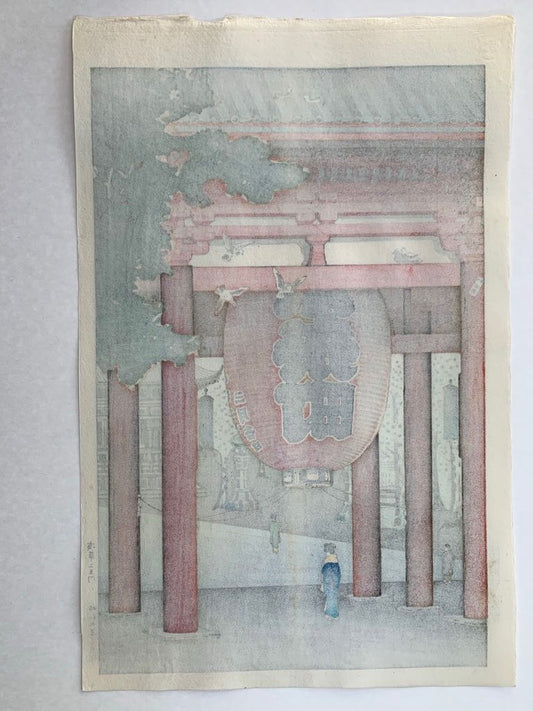 Estampe Japonaise de Koitsu Tsuchiya | La lanterne d'Asakusa