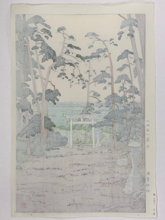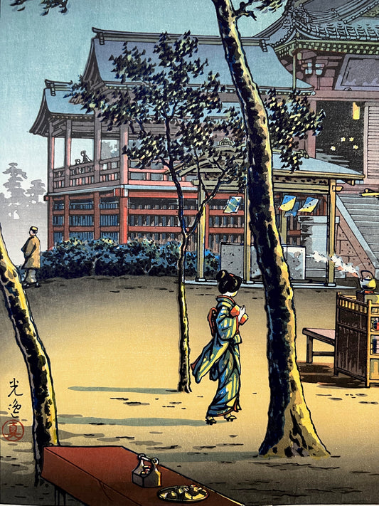 Estampe Japonaise de Yoshida Toshi | Temple de Akiba