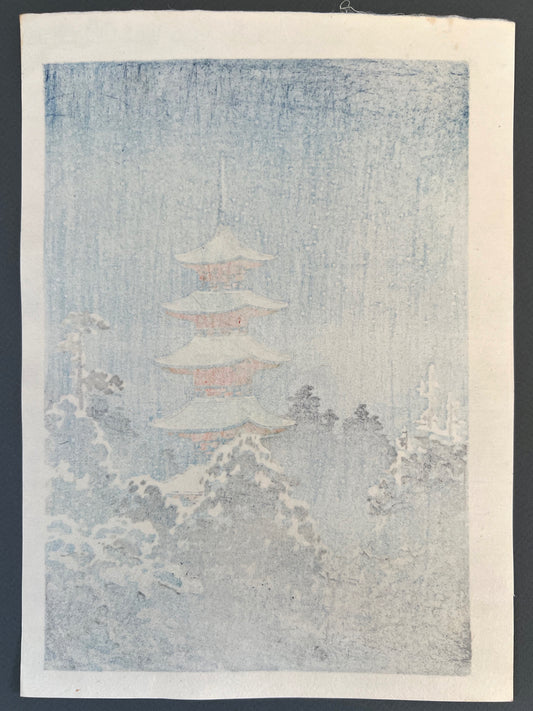 Estampe Japonaise de Koitsu Tsuchiya | Pagode de Nikko sous la neige