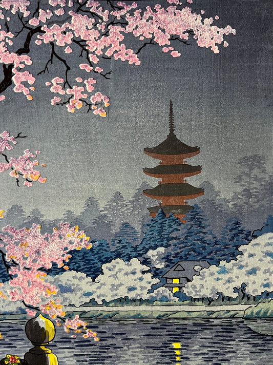 Estampe Japonaise de Koitsu Tsuchiya | Nuit de printemps au parc de Ueno