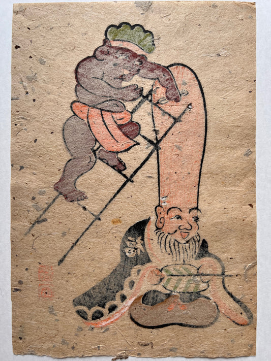 Estampe Japonaise Otsu-e de Takahashi Shozan III | Dieu du Bonheur Sakayaki, Crâne tonsuré