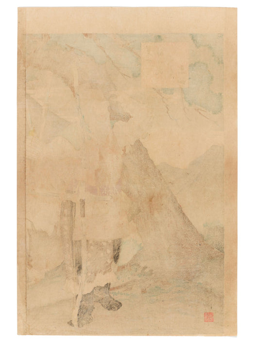 Estampe Japonaise de Hyōshū - L’empereur Jinmu scrutant l’horizon depuis le mont Togakushi
