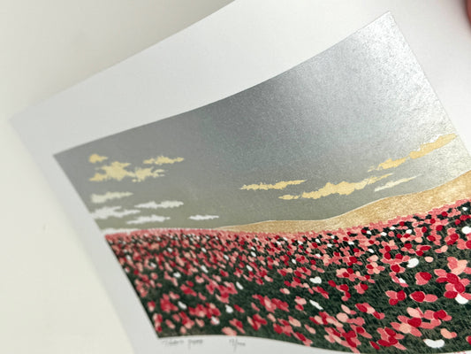 Estampe Japonaise de Namiki Hajime - Colline 2 - Champ de coquelicots