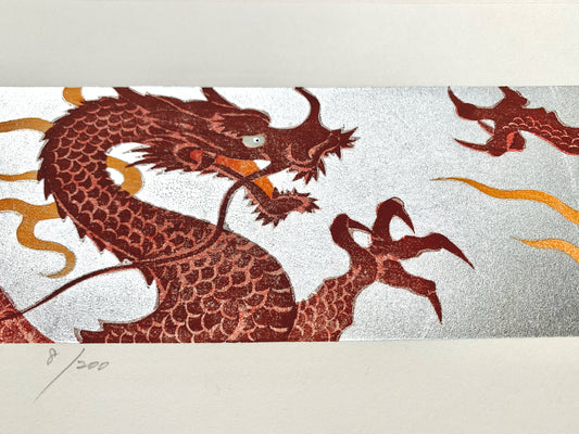 Estampe Japonaise de Namiki Hajime, Deux Dragons Rouges Flamboyants