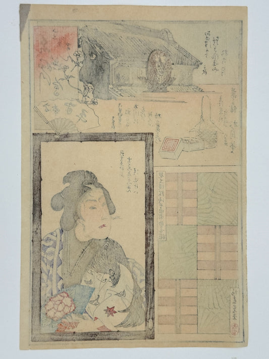Estampe Japonaise de Yoshiiku, Genji moderne, Hahakigi, chapitre 2