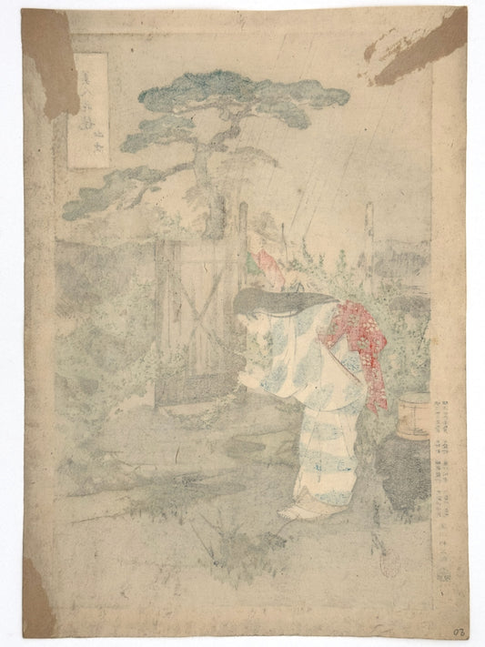Estampe Japonaise de Ogata Gekko | Beauté cueillant des roses des montagnes