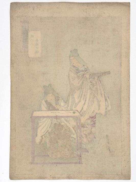 Estampe Japonaise de Yoshiiku, Contemplation de la Lune d'Automne