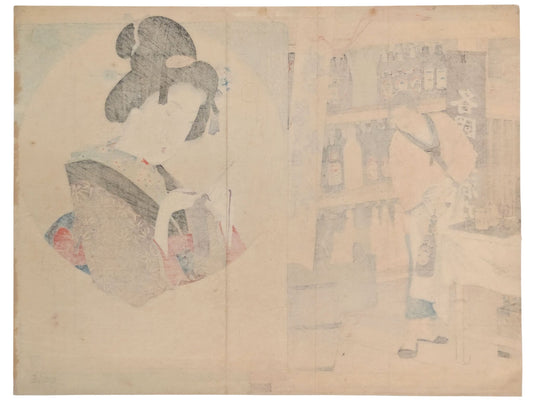 Estampe Japonaise de Kunichika | Magasin de confiseries, festival et beauté