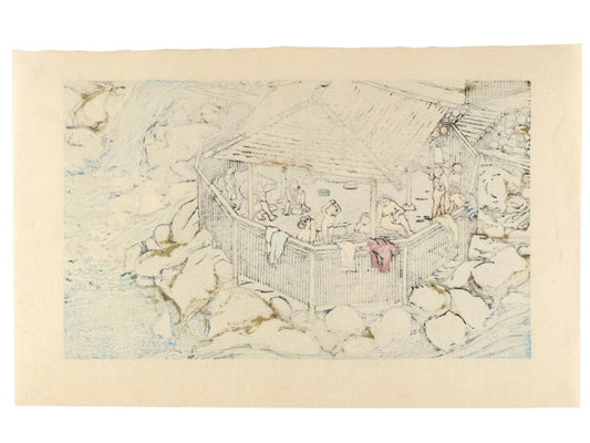 Estampe Japonaise de Watabe Masaya, Onsen à Chuzenji