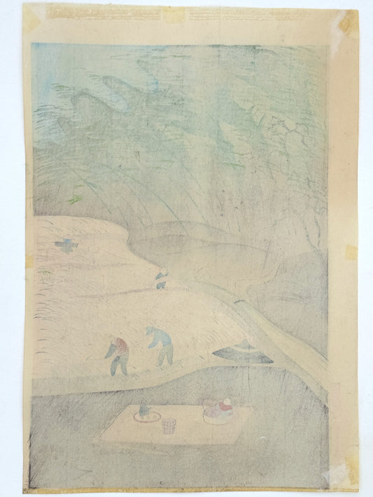 Estampe Japonaise de Bakufu Ohno | Récolte du riz, fauchage