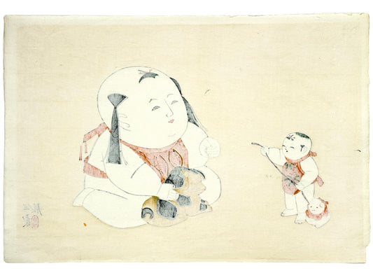 Estampe japonaise de Nishizawa Tekiho, Deux gosho et leurs jouets