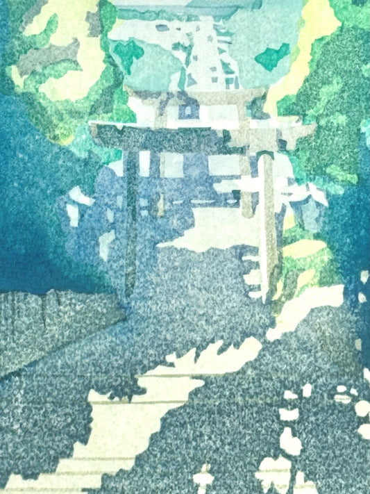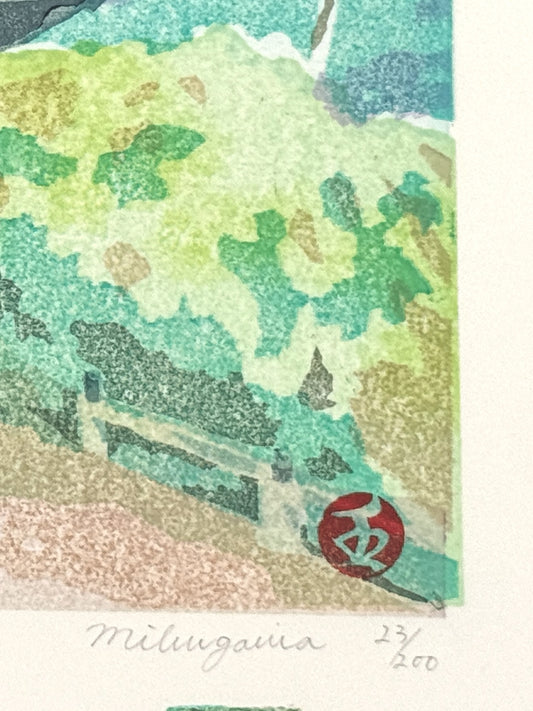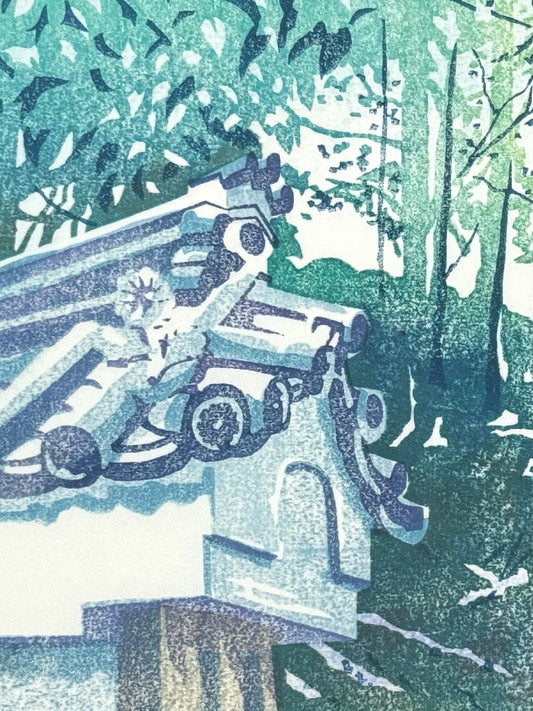 Estampe Japonaise de Mibugawa Junichi, Temple dans les Montagnes