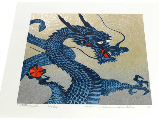 Estampe Japonais de Namiki Hajime, Dragon bleu 4-1