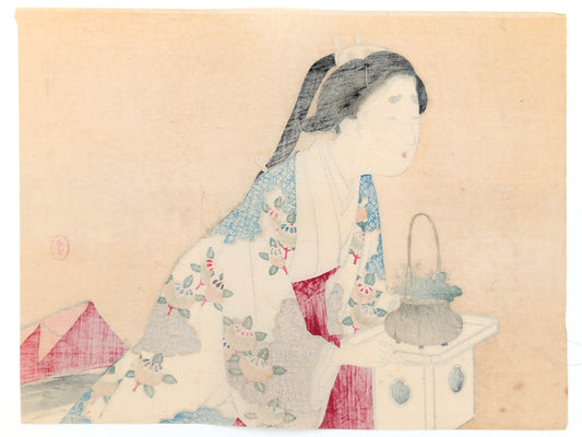 Estampe Japonaise Kuchi-e de Toshikata Mizuno, Beauté et ikebana