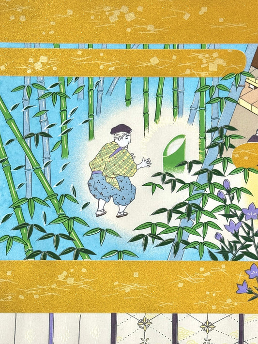 Sérigraphie Japonaise, Conte Princesse Kaguya sur fond or