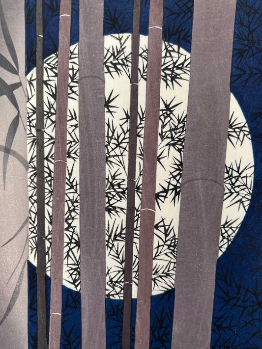 Estampe Japonaise de Teruhide Kato, Nuit de Pleine Lune et Bambou
