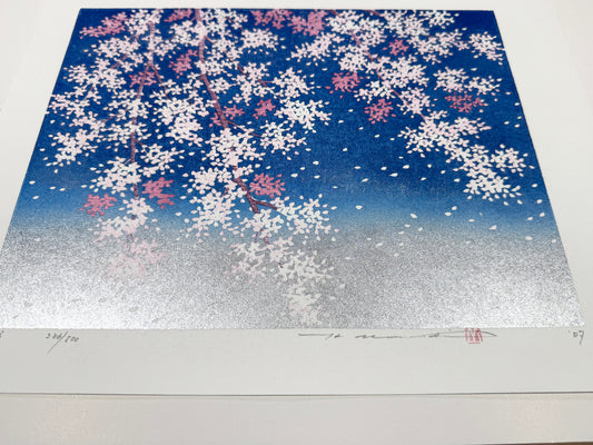 Estampe Japonaise de Namiki Hajime, Nuit sur les Sakura