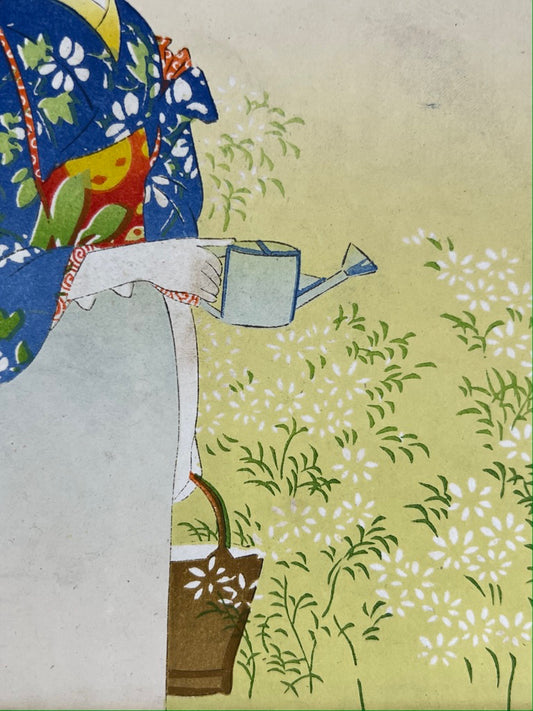 Estampe Japonaise Uchiwa-e - Femme à l'arrosoir