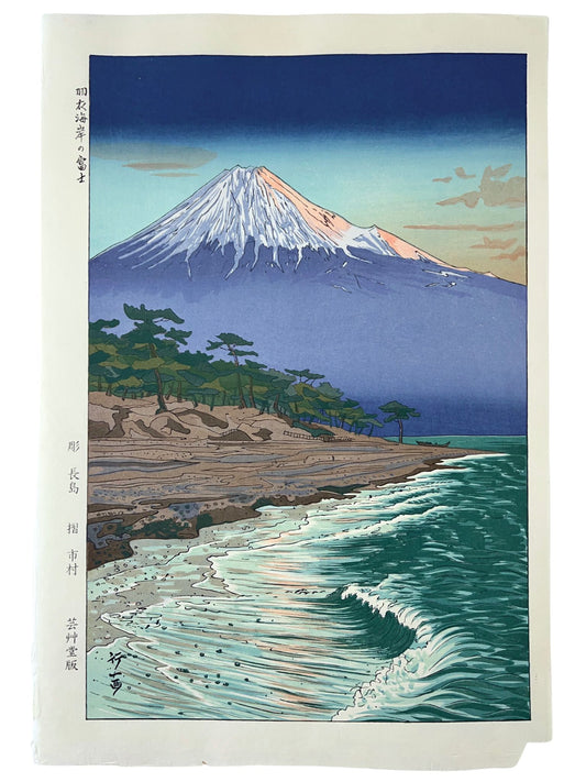 Estampe Japonaise de Okada Koichi, Le Mont Fuji vu de la plage d'Hagomoro