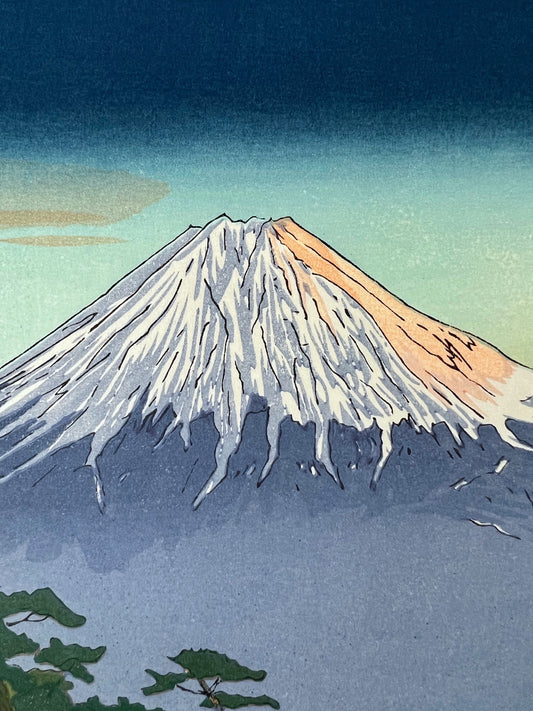 Estampe Japonaise de Okada Koichi, Le Mont Fuji vu de Hakone la nuit