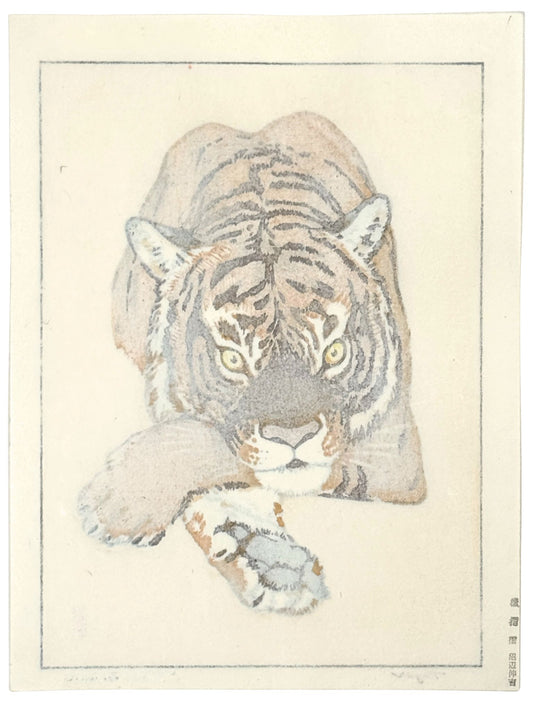 Estampe Japonaise de Yoshida Toshi, Tigre au repos