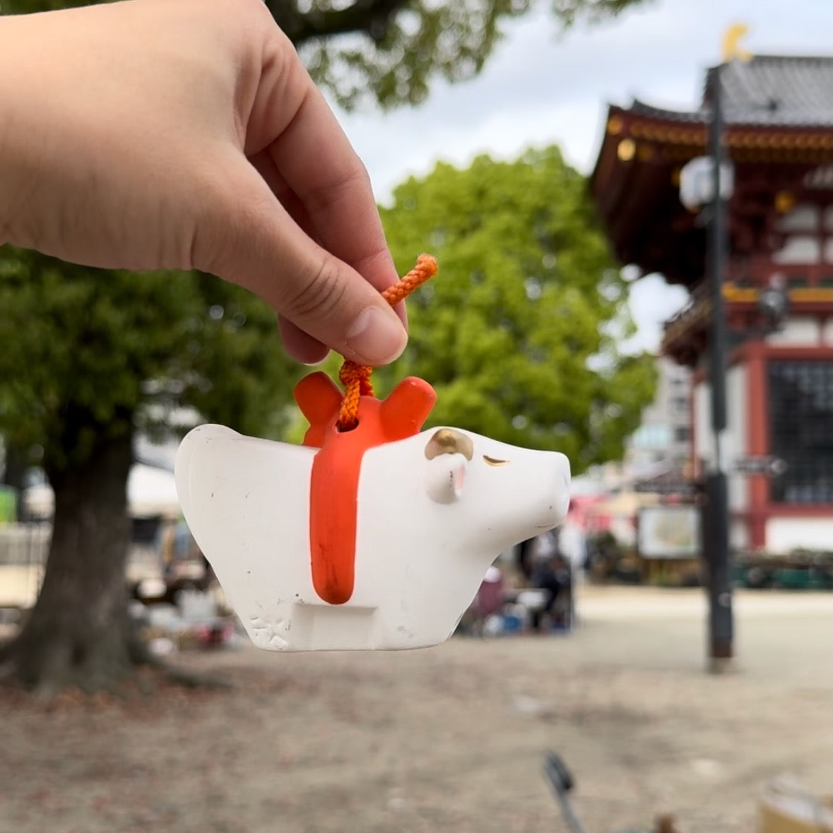 Une cordelette rouge permet de suspendre la clochette, idéale pour décorer un intérieur ou servir de porte-bonheur. Le bœuf, dans la culture japonaise et chinoise, incarne la stabilité et le succès obtenu par l'effort constant, en faisant un symbole favorable à exposer dans les foyers.